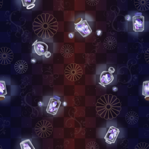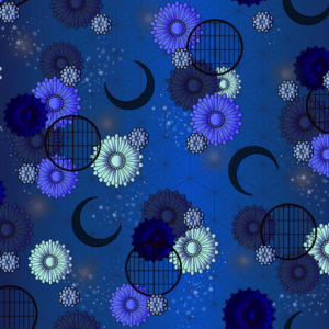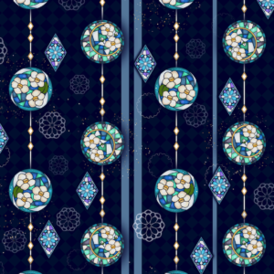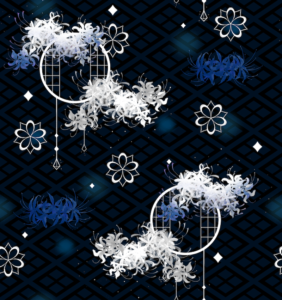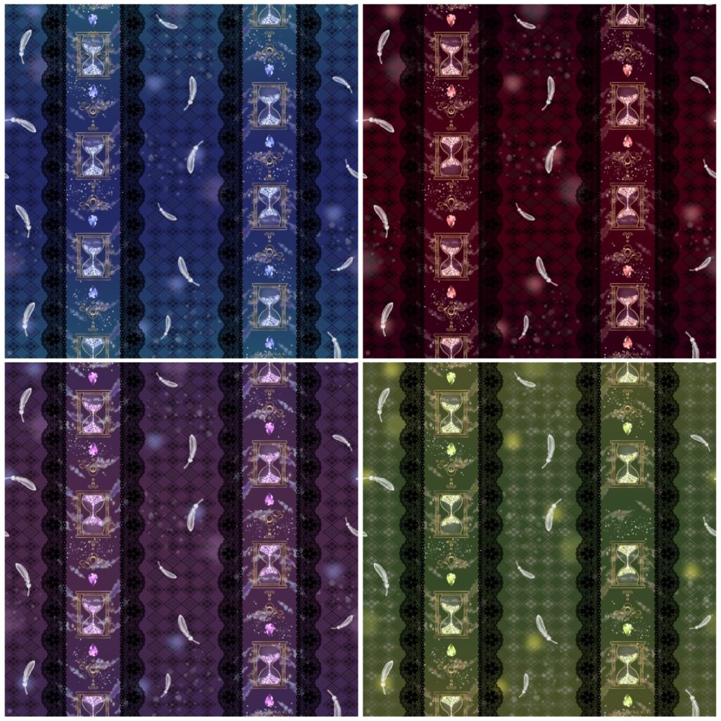 宝石を砕いた砂時計と、舞い上がる夜空を描いた「宵空と祈りの歌」柄をご用意してますのでしております。