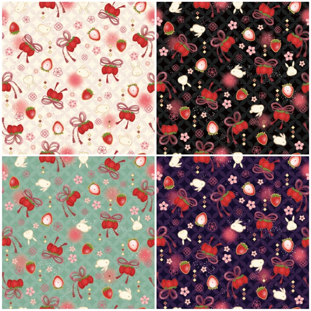 今回は、甘いいちごとマシュマロのようなうさぎの和柄「乙女万花」柄、